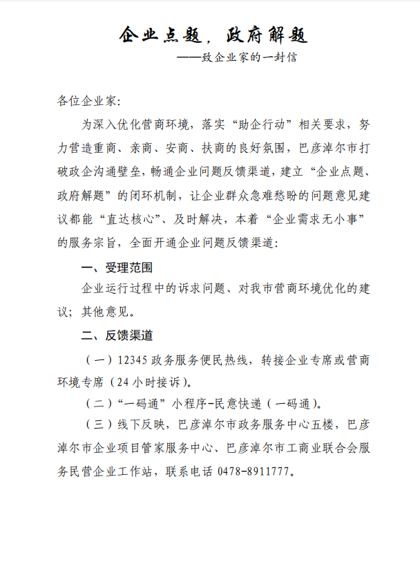 企業點題政府解題----致企業家的一封信