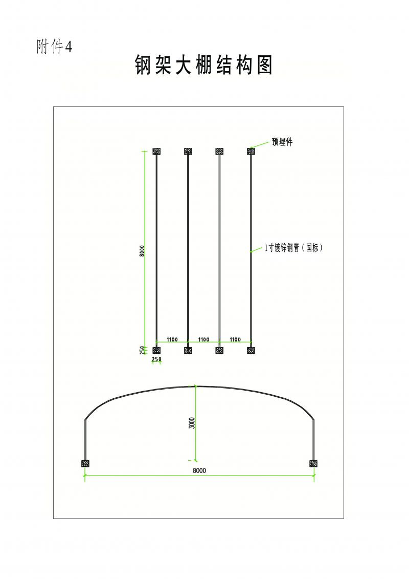 2.大中棚:對(duì)新建集中連片且占地面積在500畝(含500畝)以上(新華鎮(zhèn)萬(wàn)畝無(wú)公害韭菜種植基地新建或改建韭菜大中棚集中連片且占地面積在200畝以上)的大中棚,按凈面積每畝給予補(bǔ)貼5000元,建設(shè)標(biāo)準(zhǔn)要符合大中棚結(jié)構(gòu)要求(見(jiàn)附件4);新型雙立柱鋼架結(jié)構(gòu)棉簾大棚及以上標(biāo)準(zhǔn)的,按凈面積每畝給予補(bǔ)貼1萬(wàn)元,建設(shè)標(biāo)準(zhǔn)要符合或高于雙立柱鋼架結(jié)構(gòu)棉簾大棚(見(jiàn)附件5)要求。